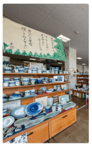 尾張瀬戸駅の川沿いにある陶器専門店。